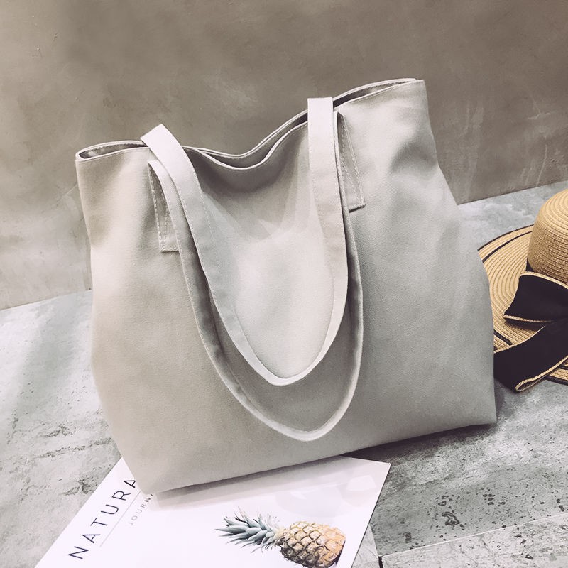 Versi Korea baru dari gambar-tas ibu tas kanvas tas bahu wanita tas ibu mikrofon retro warna solid s | Shopee Indonesia