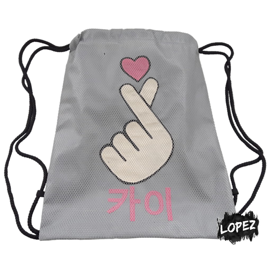 Tas Jaring Finger Heart / Tas Serut Saranghae Custom Gambar + Nama / String Bag Tulisan Korea Hangul | Shopee Indonesia