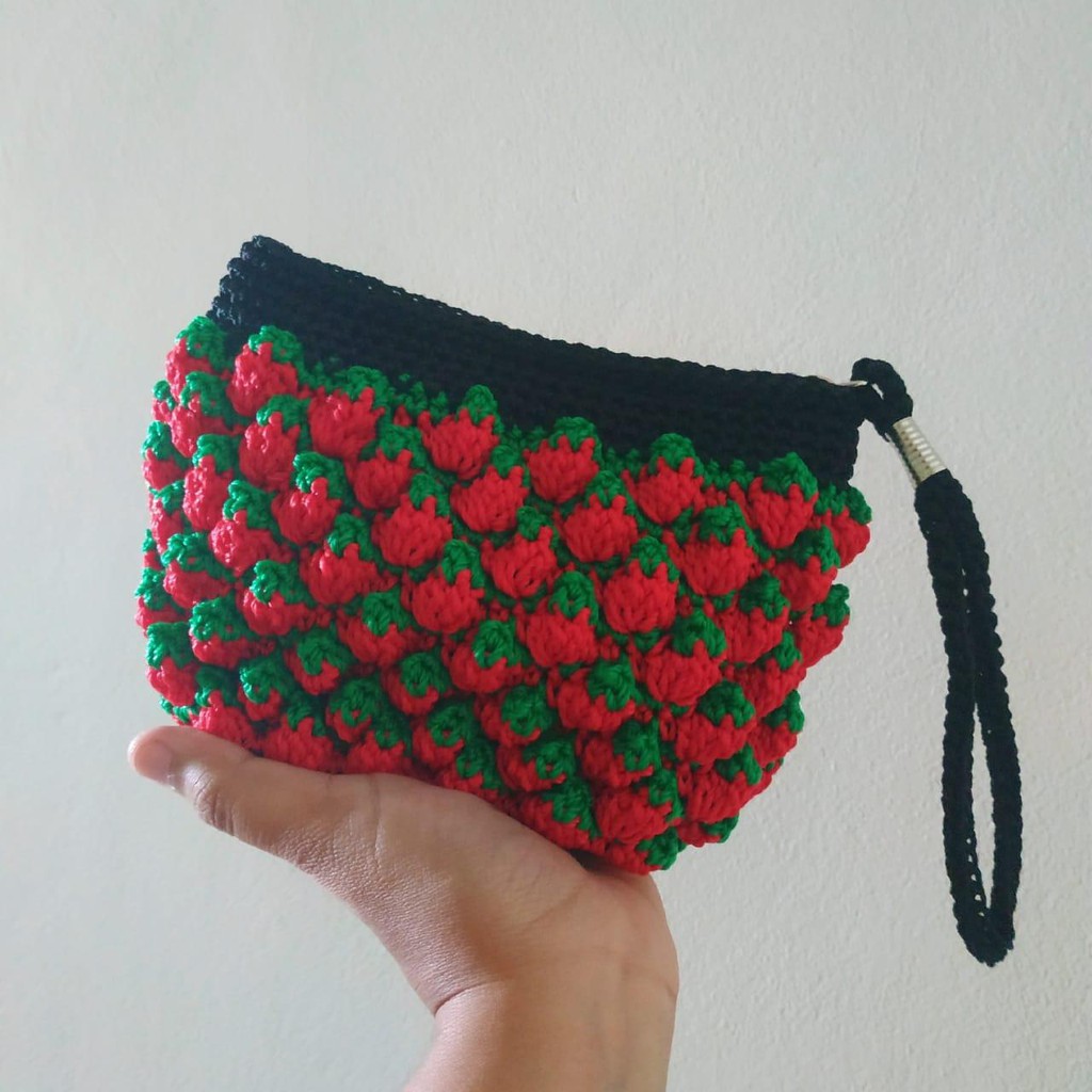 Dompet Rajut Motif Strawberry -Dompet Wanita Rajut Stroberi- Dompet Koin Pouch Rajut by Rajut Galawi | Shopee Indonesia