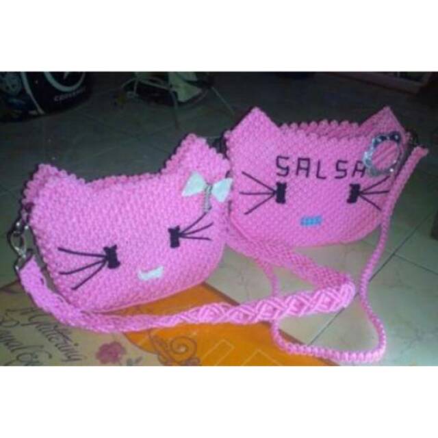 Promo tas tali kur - tas macrame - tas tali kur motif hello kitty - tas motif terpopuler - model tas terlaris kids jaman now di Lapak Lohgawe_Store | Bukalapak