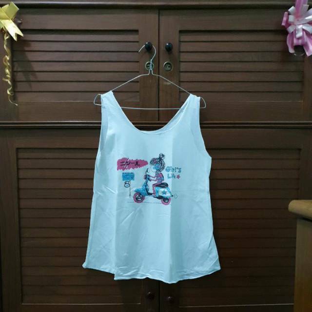 Preloved] Tank Top imut putih gambar cewe motor vespa (beli di Thailand) | Shopee Indonesia