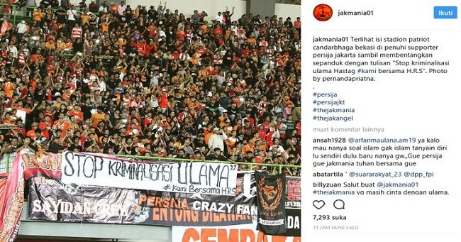 The Jakmania Persija Gelar Spanduk Bela Ulama, Viking Persib: Dalam Akidah Kita Tetap Bersatu! - Bersama Islam