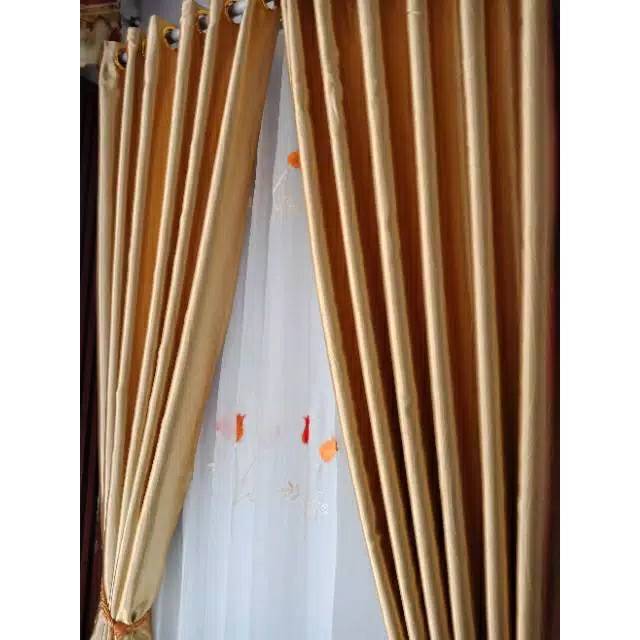Gorden polos satu set plus poni hordeng polos warna gold | Shopee Indonesia