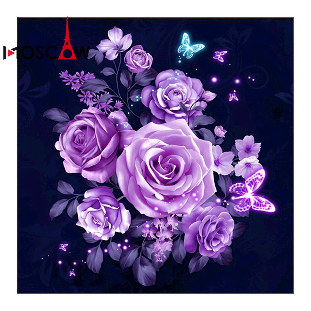 Winnereco Lukisan Diamond 5d Diy Gambar Bunga Mawar Warna Ungu Untuk Dekorasi Rumah | Shopee Indonesia
