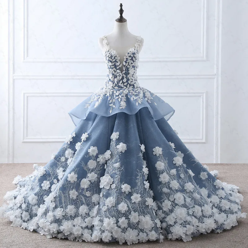 TW0184 Bunga Peri Beige Appliques Luxury Wedding Dress Dengan Gambar Nyata Royal Gaun Pengantin Biru|luxury wedding dresses|wedding dressluxurious wedding - AliExpress