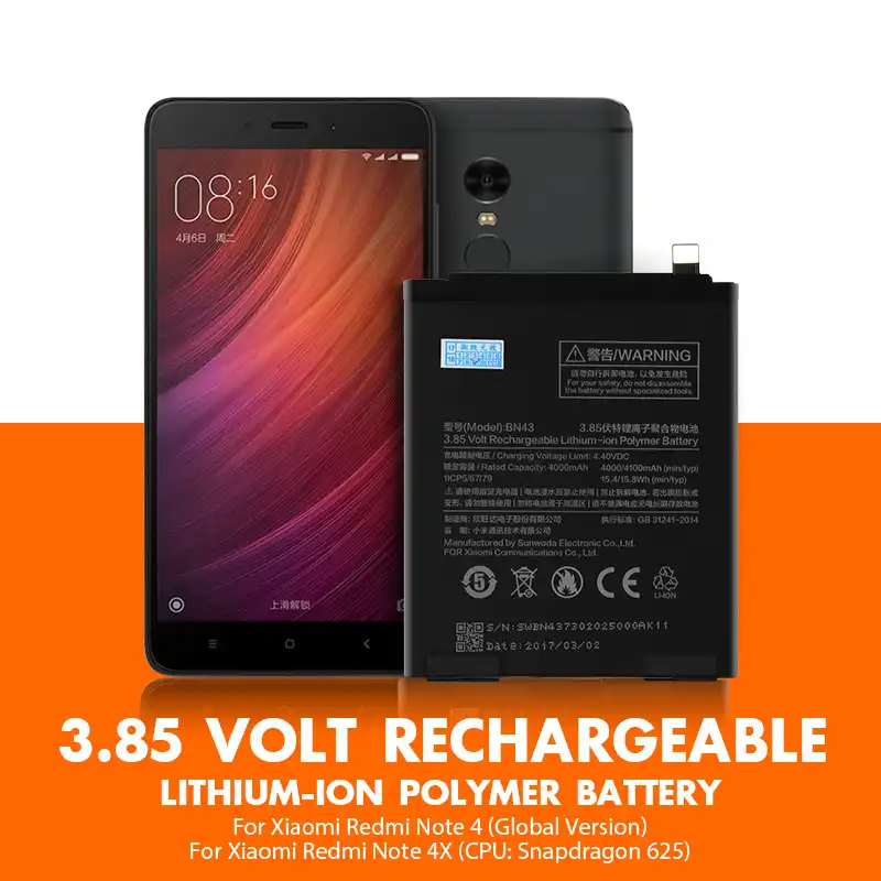 Original BN43 Battery Xiaomi Redmi Note 4 Global Version Charging Batteries 4100mAh Capacity Lithium Polymer Bateria Replacement| | - AliExpress