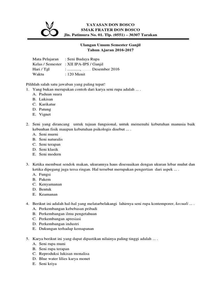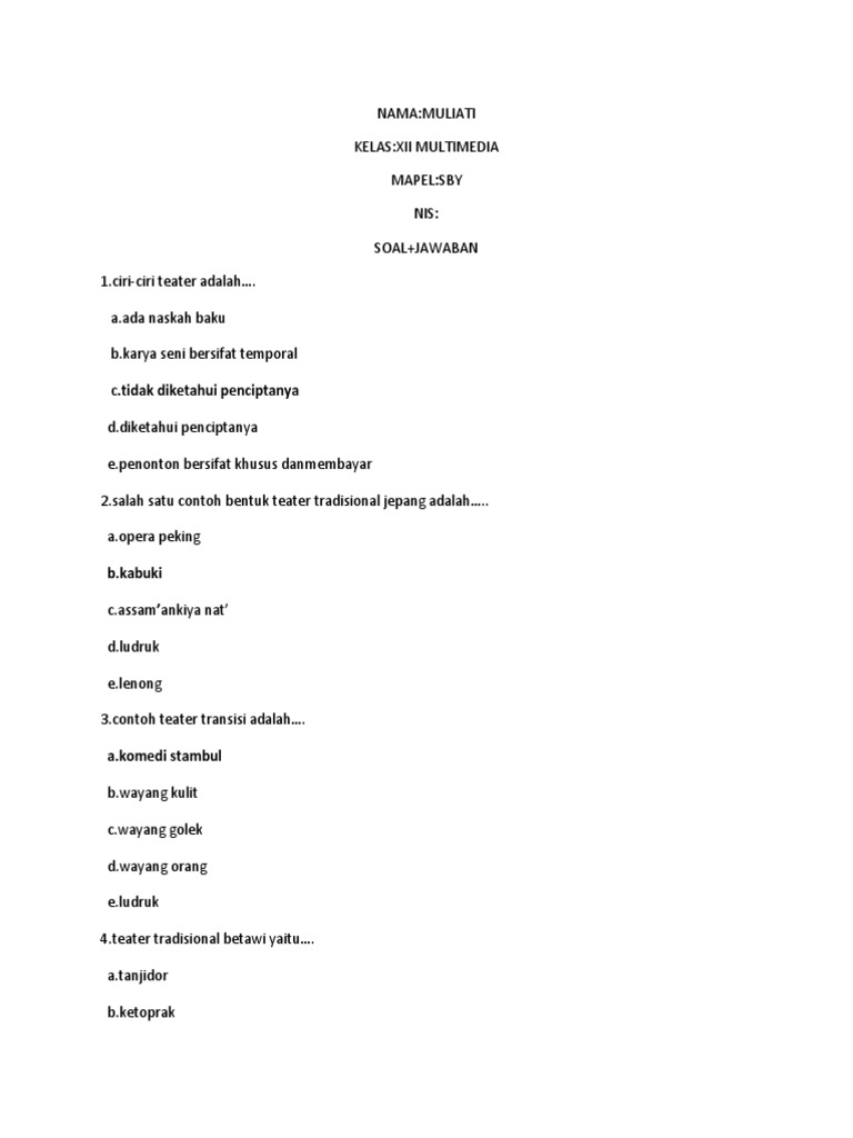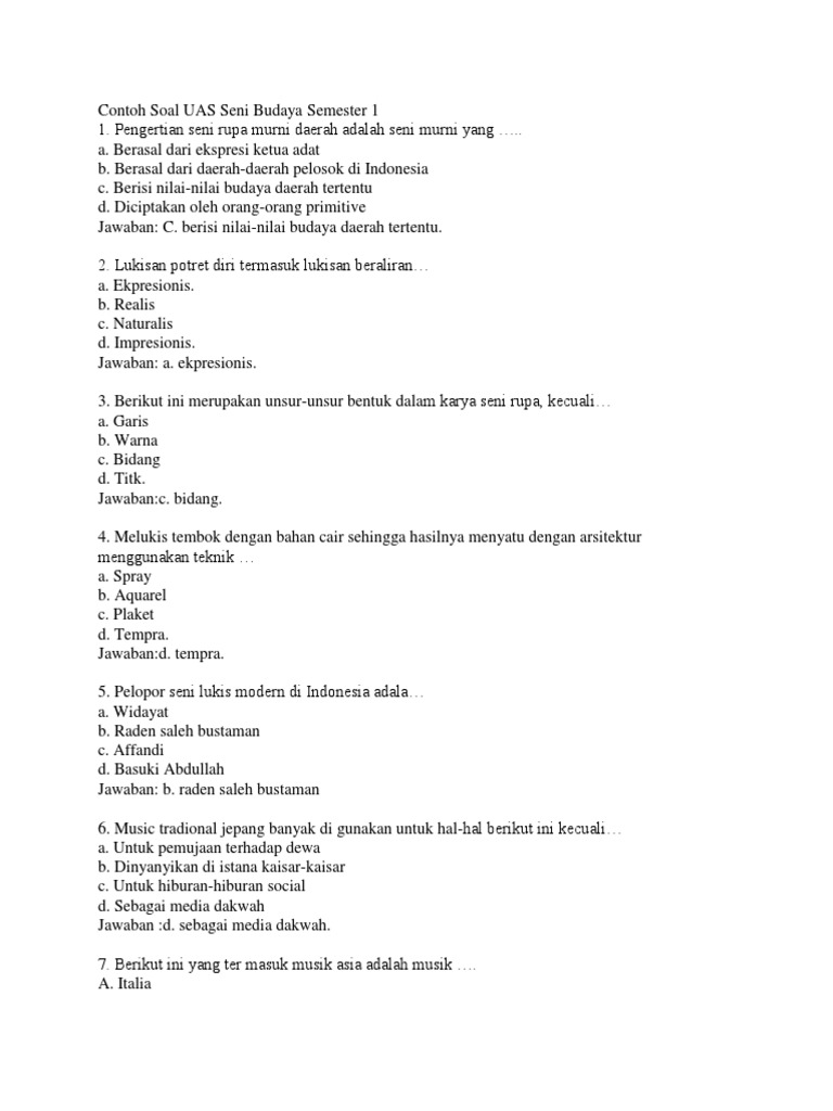 PDF) SOAL SENI BUDAYA KELAS XI | nowo beny - Academia.edu