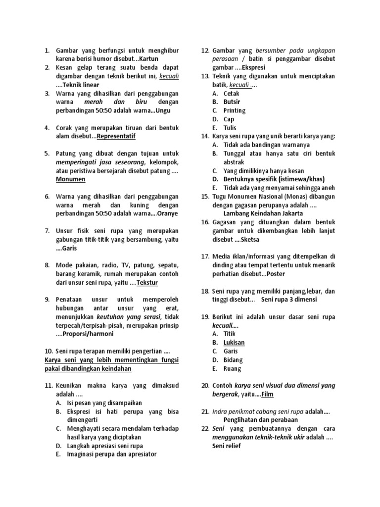 Soal dan jawaban ulangan karya seni rupa murni indonesia – Artikeltop.xyz