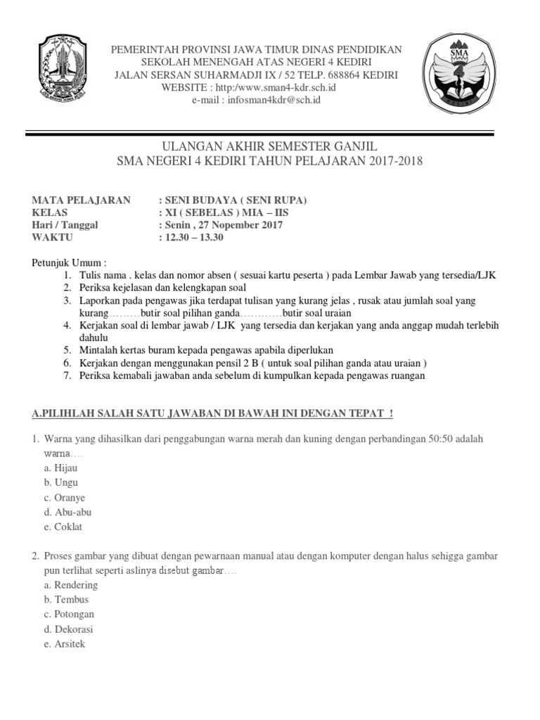 Ulangan Akhir Semester Ganjil Sma Negeri 4 Kediri Tahun Pelajaran 2017-2018
