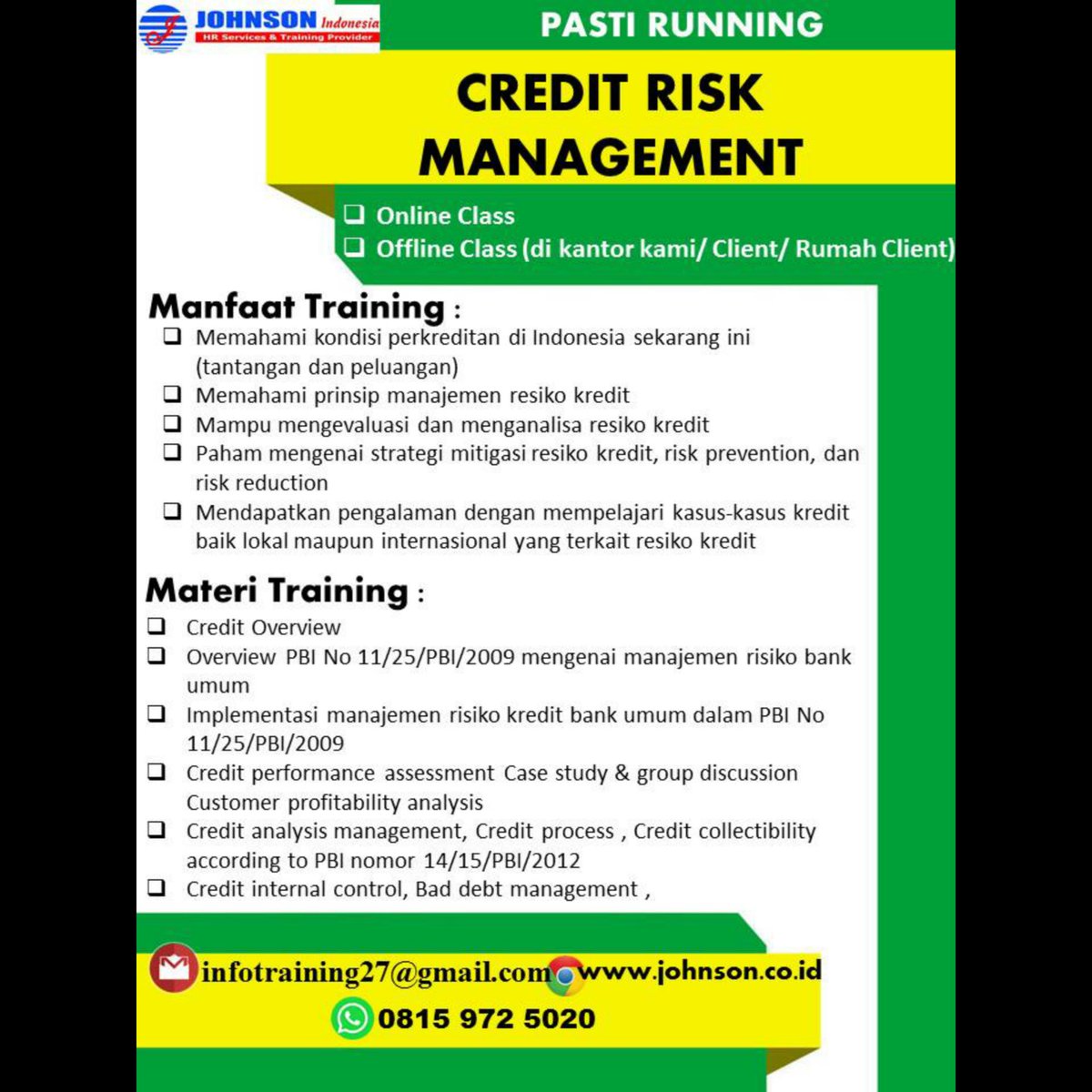 Johnson Indonesia Training Provider on Twitter: “• Training : “Credit Risk Management” Durasi 06-08 Jam Efektif (Durasi 1 Jam 30 Menit/per sesi) bisa di pecah menjadi 2 hari mulai jam 09.00 -