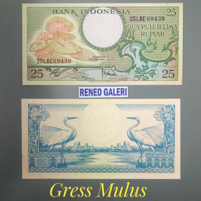 Gress mulus Rp 25 Rupiah tahun 1959 seri bunga burung Uang kertas kuno duit jadul lawas lama | Shopee Indonesia