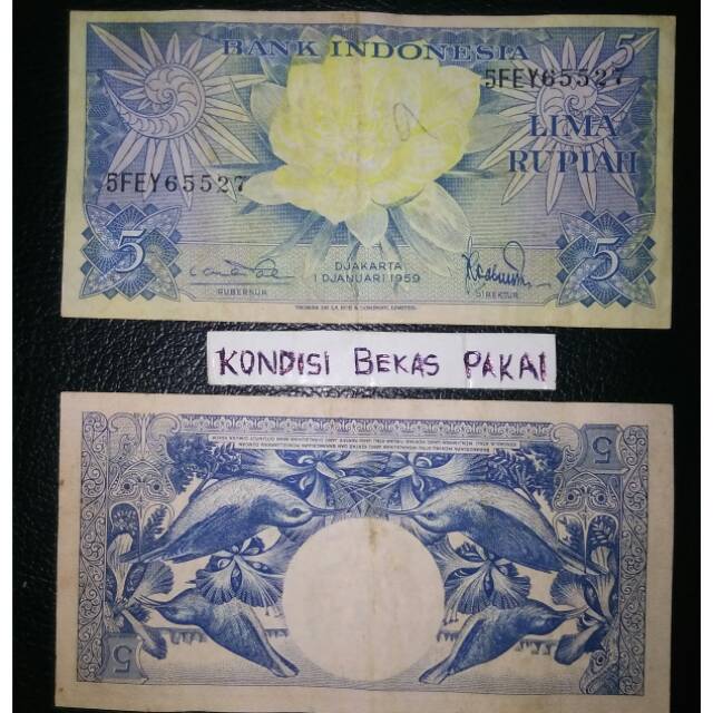 Rp 5 Rupiah tahun 1959 seri bunga burung uang kertas kuno materi mahar 20 | Shopee Indonesia