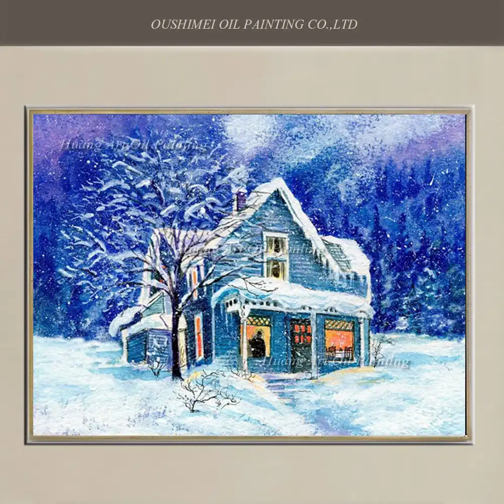 Hand Painted Painting on Canvas for Christmas Gift Modern Snow Hut Blue Sky Landscape Oil Painting For Room Wall Decor Paintings|hand painted|oil paintinghand painted paintings - AliExpress
