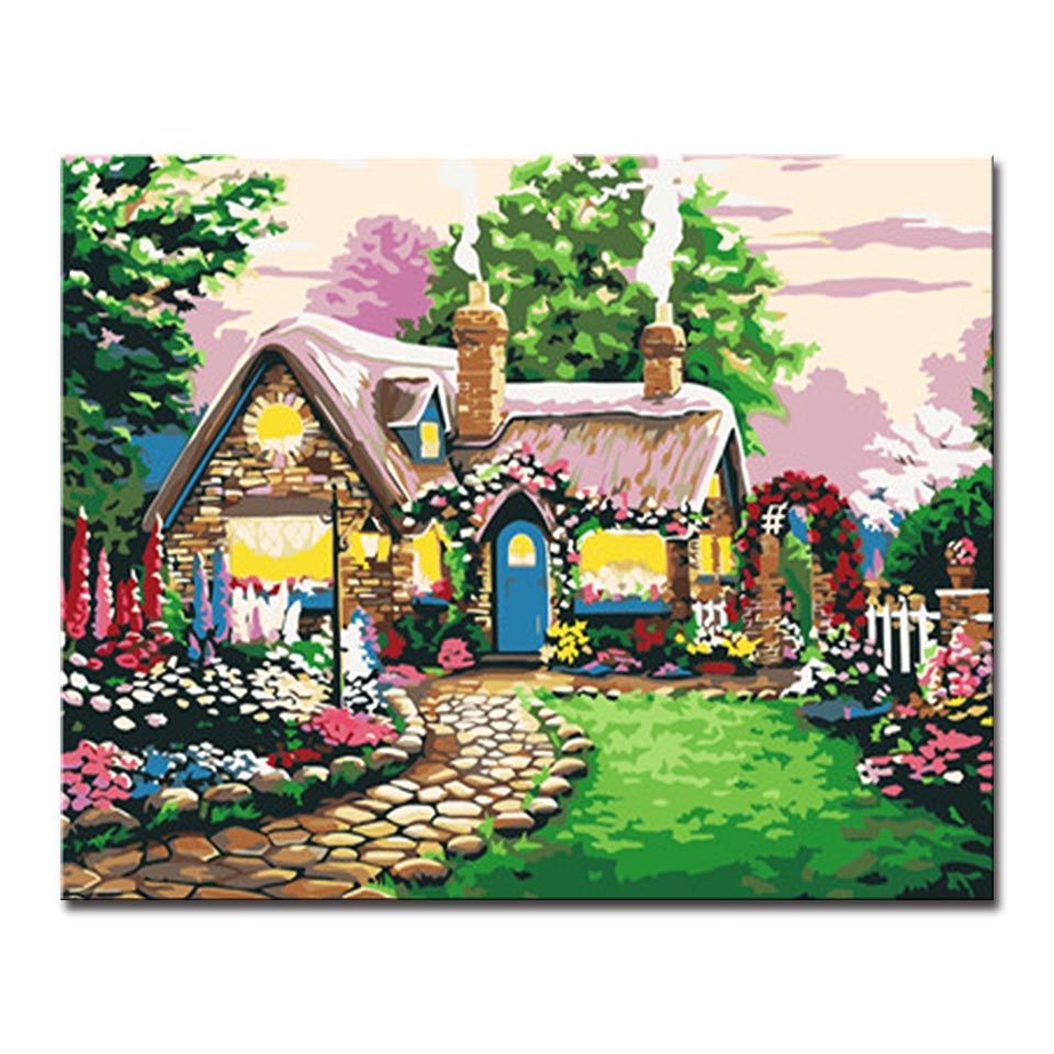 Unframed 40x50CM Canvas Picture Painting by Numbers Diy Oil Painting DIY Artwork Decorative Canvas Painting By Numbers Hill Hut|oil painting diy| painting diydiy oil painting - AliExpress