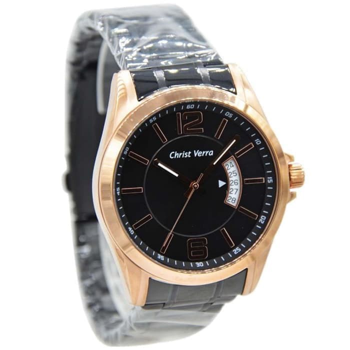 JAM TANGAN CHRIST VERRA CV 71069G-18 PRIA ROSEGOLD BLACK ORIGINAL | Shopee Indonesia