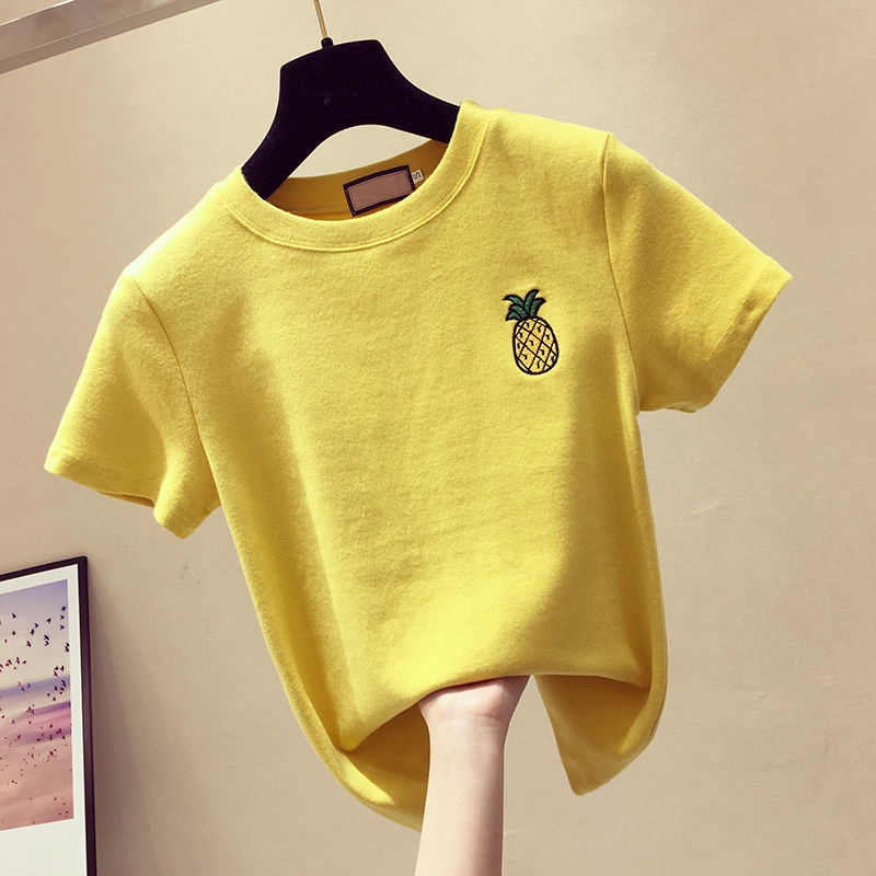 Kaos T-shirt Casual Wanita Dengan Model Lengan Pendek Dan Gambar Buah Nanas | Shopee Indonesia