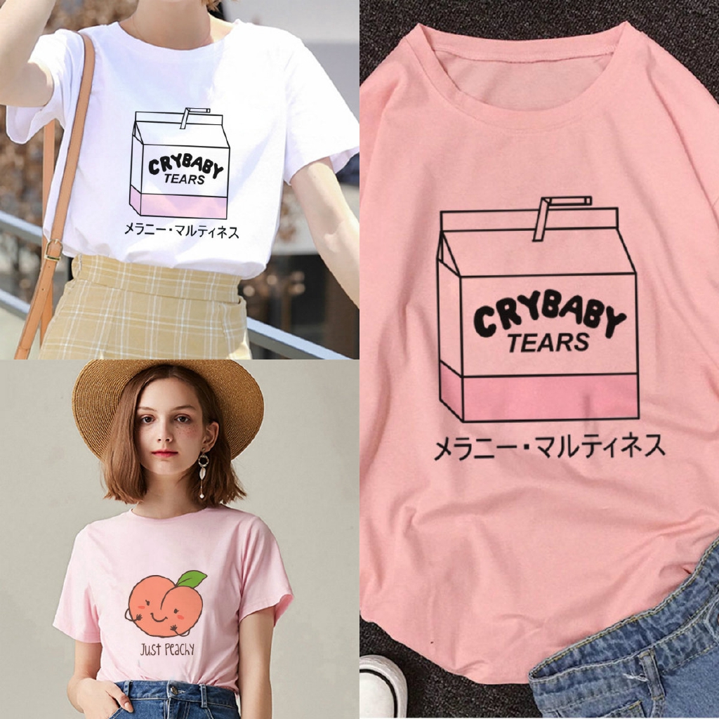 Kaos T-Shirt Wanita Dengan Gambar Kartun Buah Peach Dan Warna Putih/Pink Bergaya Kawaii | Shopee Indonesia