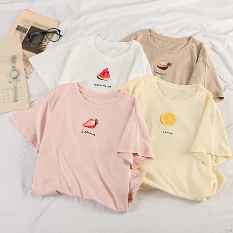 BL10128 Blouse import kaos import wanita kaos pendek motif kaos buah buahan kaos kekinian kaos wanita import kaos motif buah kekinian, Fesyen Wanita, Pakaian Wanita, Atasan di Carousell