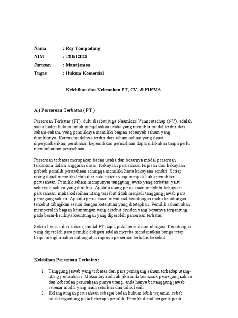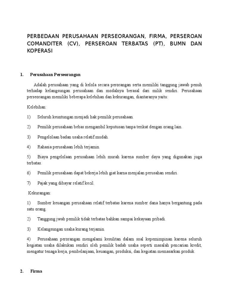 DOC) PERBEDAAN PT, PP, CV, dan Firma | Nanda Dwi Haryanto - Academia.edu