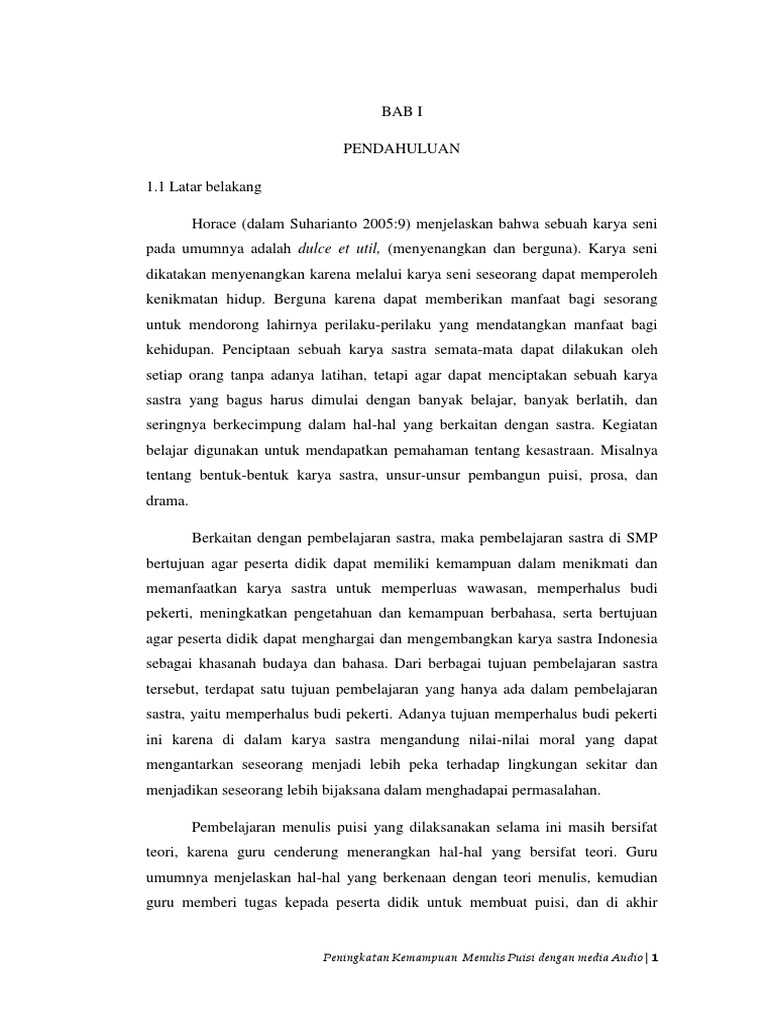 PDF) PENINGKATAN KEMAMPUAN MENULIS PUISI DENGAN TEKNIK KATA MENGALIR BERBANTUAN MEDIA BENDA KONKRET PADA SISWA KELAS VIII SMPN 5 PAGENTAN