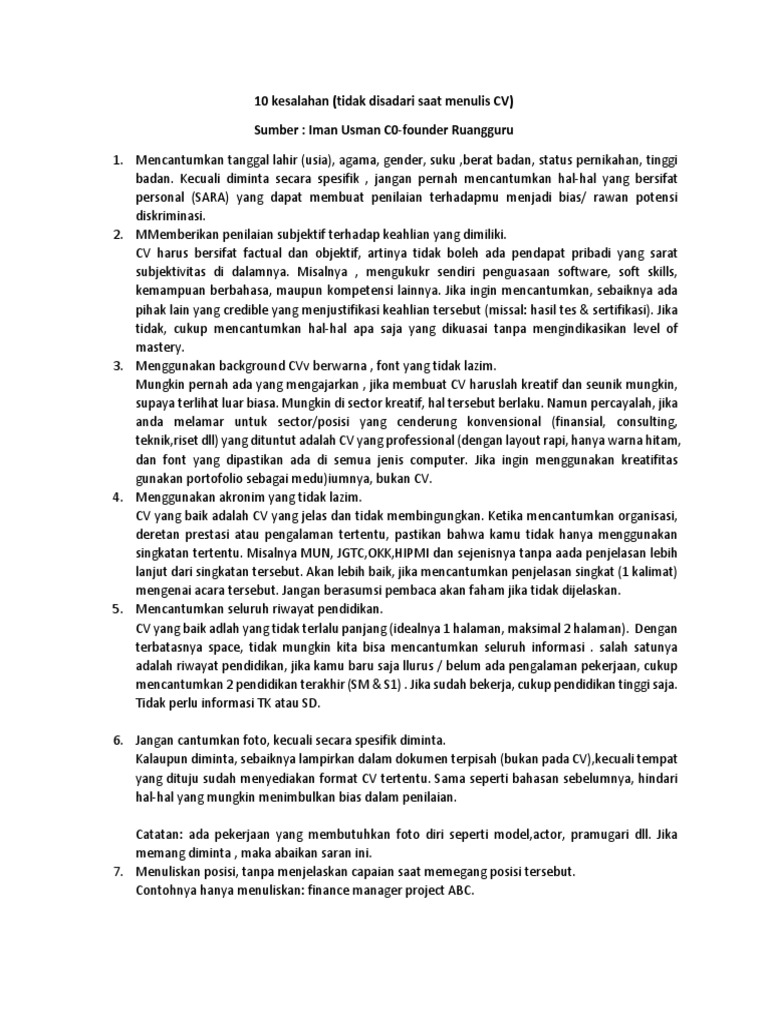 10 Kesalahan Cv source By iman usman’s instsgram co founder Ruangguru