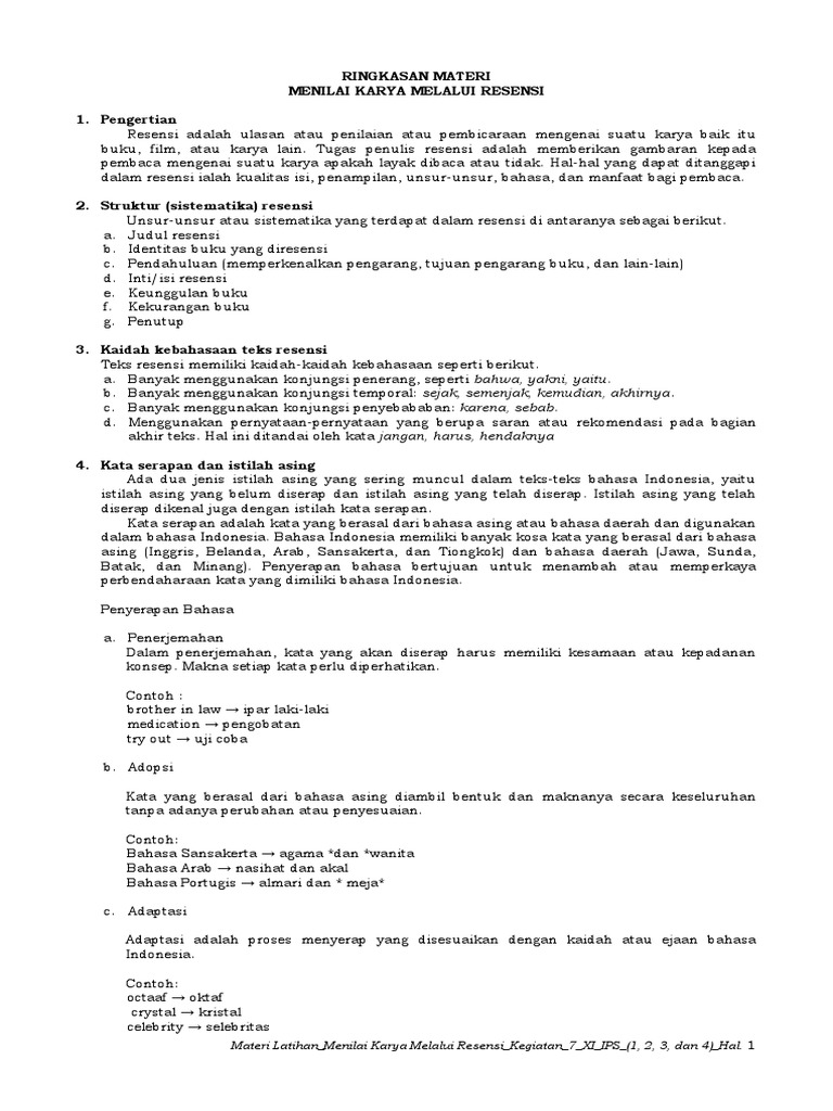 STRUKTUR DAN CIRI KEBAHASAAN TEKS RESENSI/ULASAN ~ ZUHRI INDONESIA