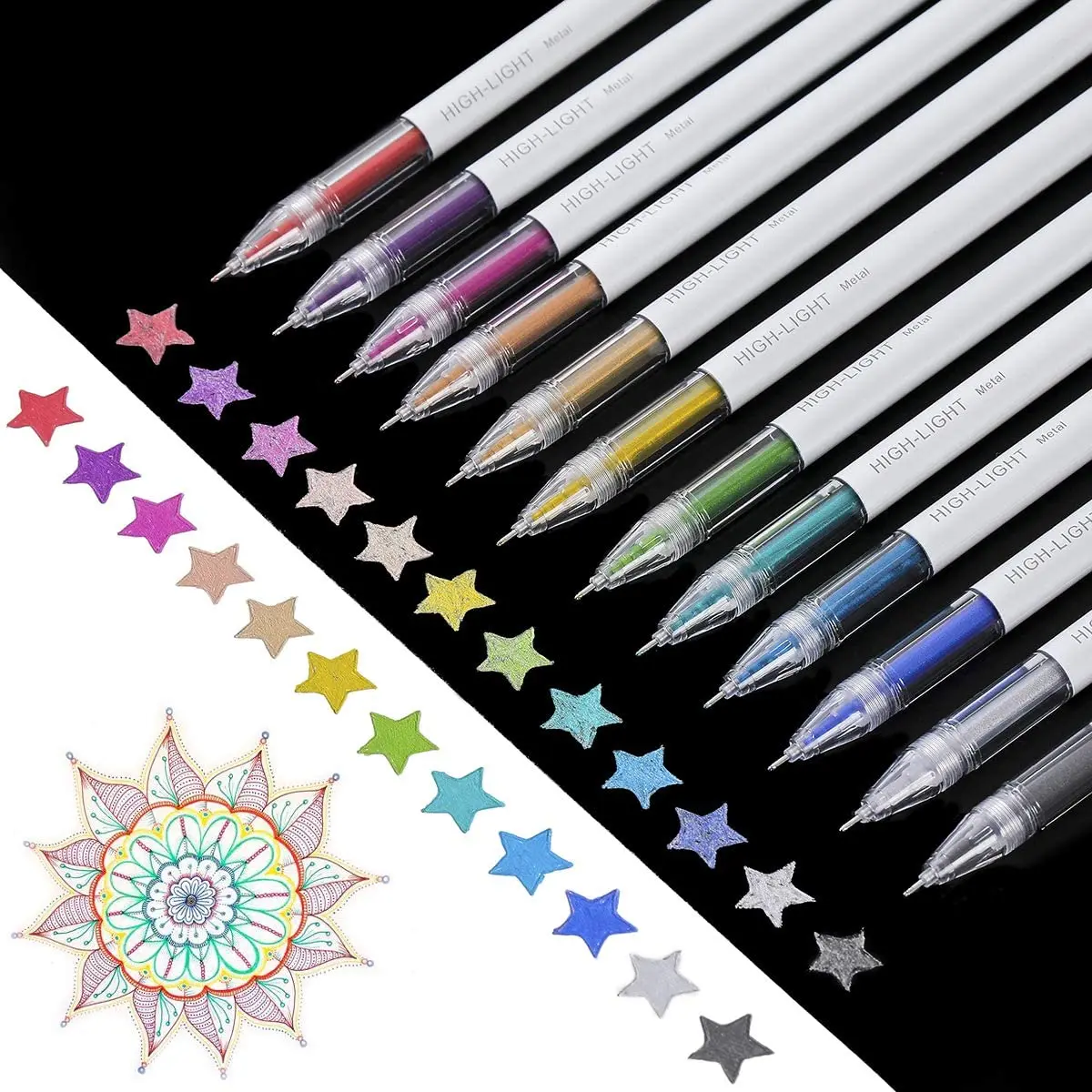 12 Pcs Pop Logam Gel Pena untuk Buku Mewarnai Gambar Scrapbooking Kartu Membuat Berbagai Macam Warna Tinta Fine Titik Cair Gel pena|Kuas Cat| - AliExpress