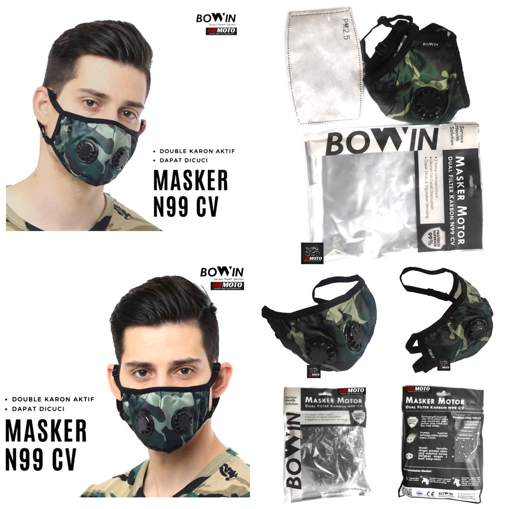 ORIGINAL Masker N99 Bowin Masker Motor - Dual Filter Karbon N99 CV (Masker Anti Polusi) | Shopee Indonesia