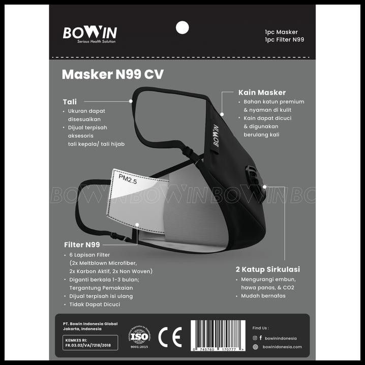 Jual BOWIN Masker N99 CV - Masker Anti Corona Virus 6 Lapisan Filter - ORI - Jakarta Barat - septianmakspro | Tokopedia