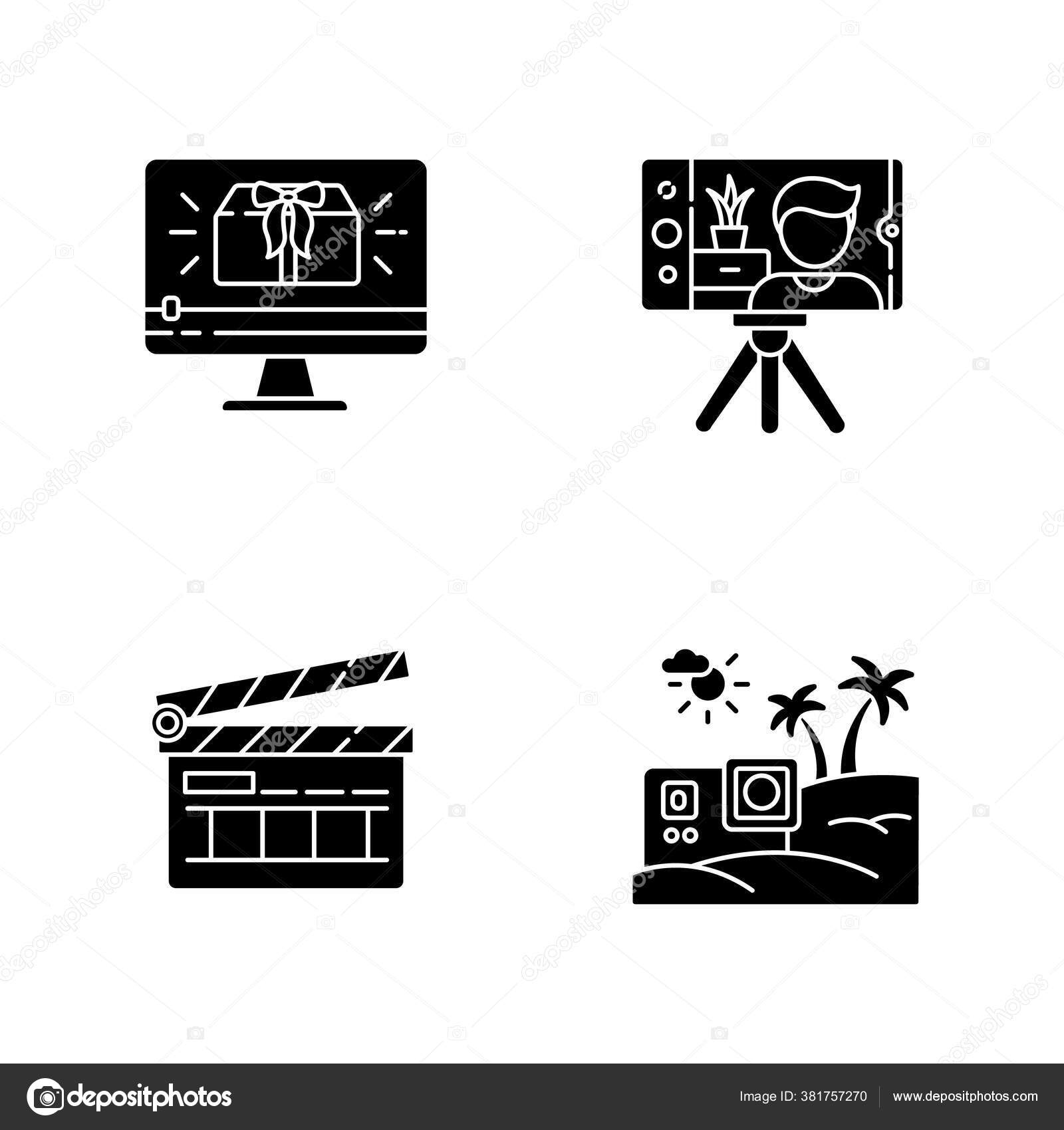 Pembuatan Film Dan Internet Blogging Ikon Glif Hitam Diatur Pada — Stok Vektor © bsd #381757270