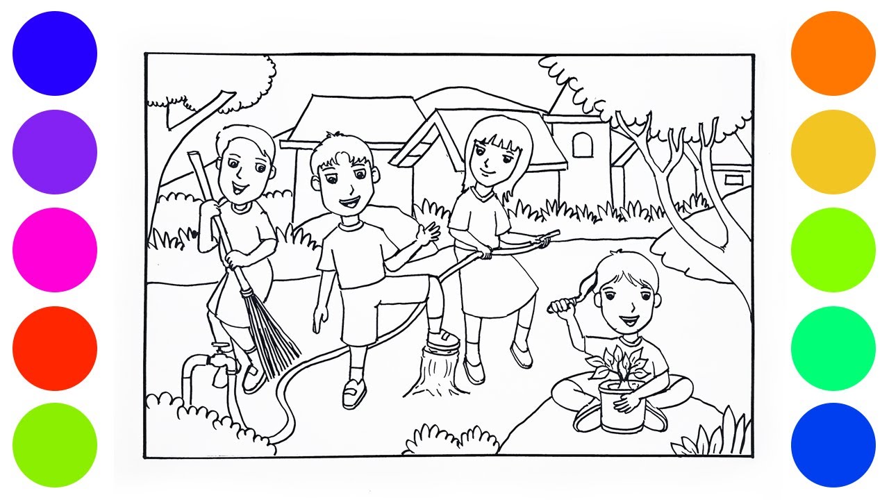 Cara Menggambar dan Mewarnai TEMA GOTONG ROYONG MENJAGA KEBERSIHAN LINGKUNGAN yang Bagus dan Mudah - YouTube