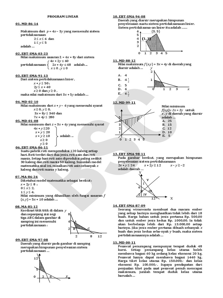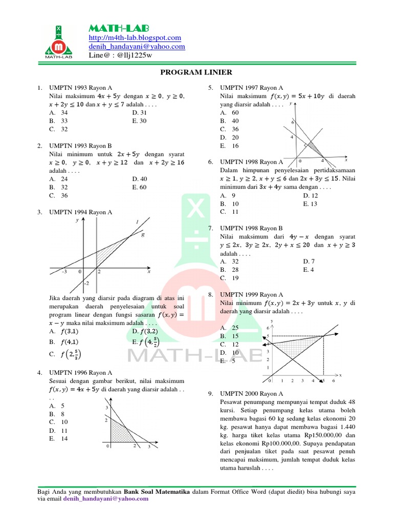 PDF) 7. SOAL-SOAL PROGRAM LINEAR | Jibril Qarni - Academia.edu
