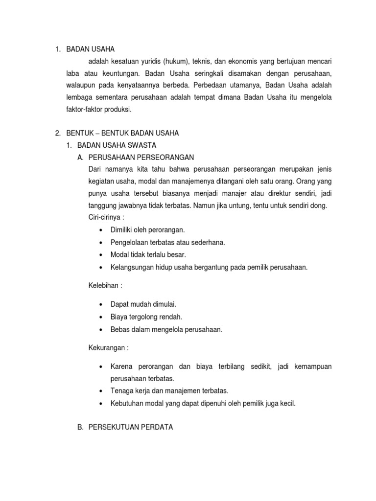 badan usaha indri.docx - Badan usaha Dari Wikipedia bahasa Indonesia ensiklopedia bebas Badan usaha adalah kesatuan yuridis(hukum teknis dan ekonomis | Course Hero