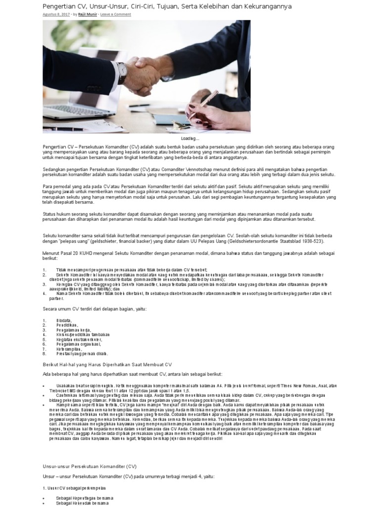 Pengertian CV Menurut Para Ahli | Sarjana Ekonomi - Tempat Belajar Ilmu Ekonomi Secara Gratis