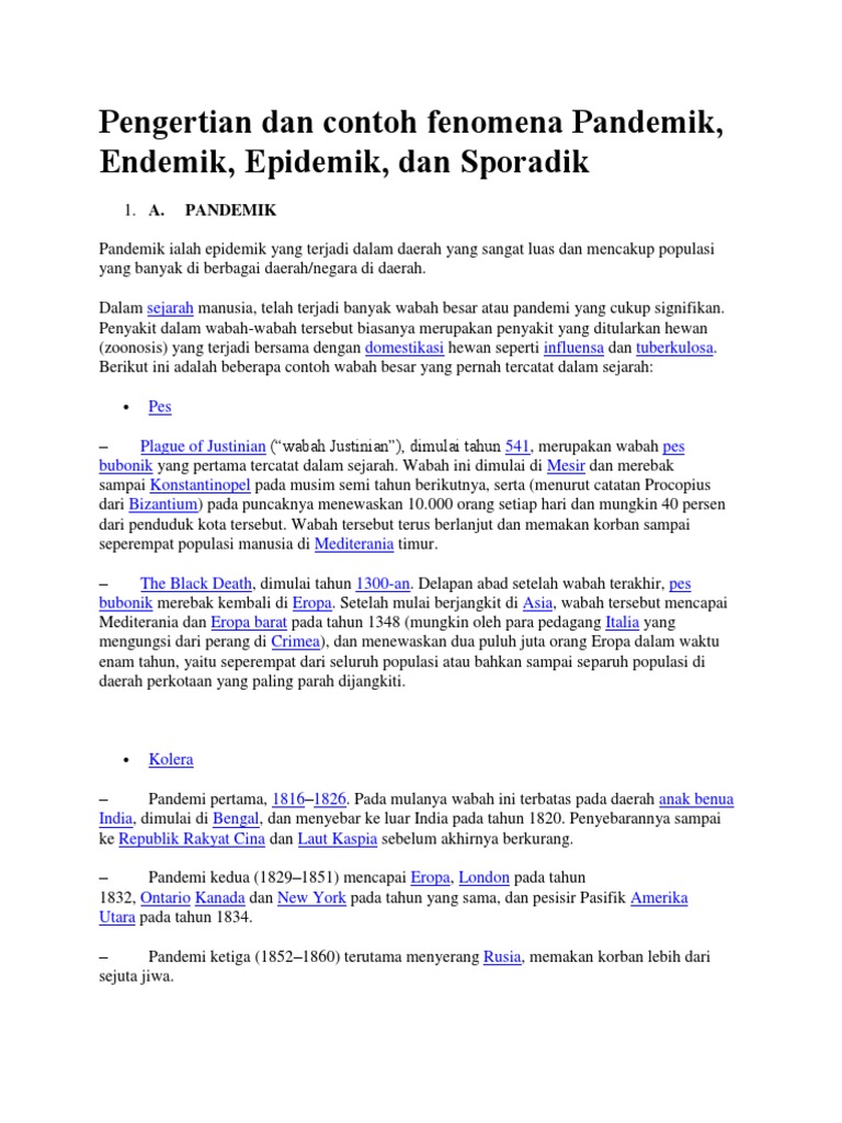 Perbedaan Endemik dengan Epidemik dan Pandemik, serta Jenis Penyakitnya