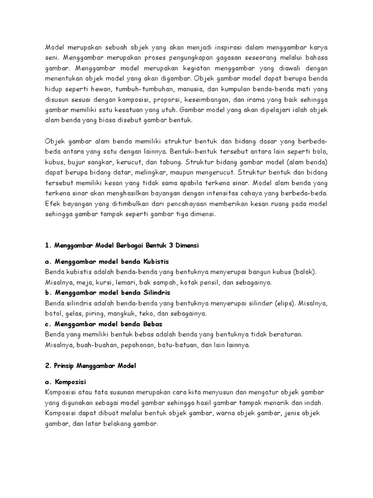 Model Merupakan Sebuah Objek Yang Akan Menjadi Inspirasi Dalam Menggambar Karya Seni