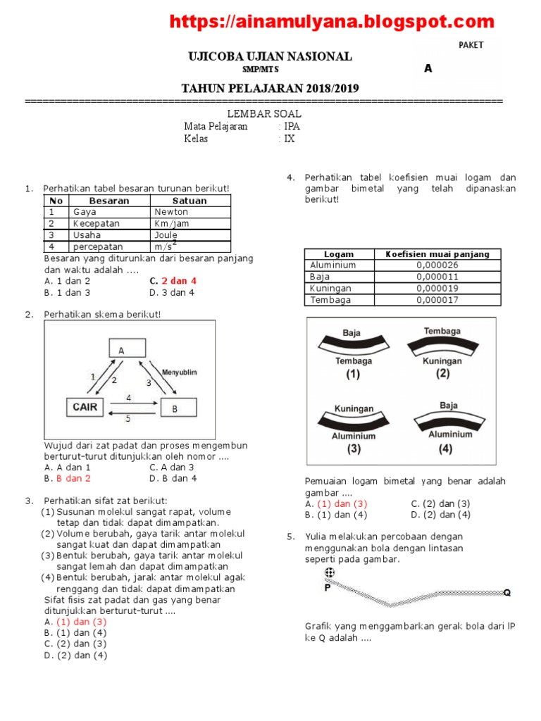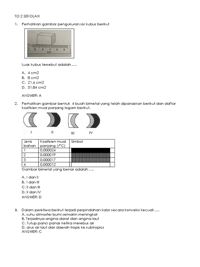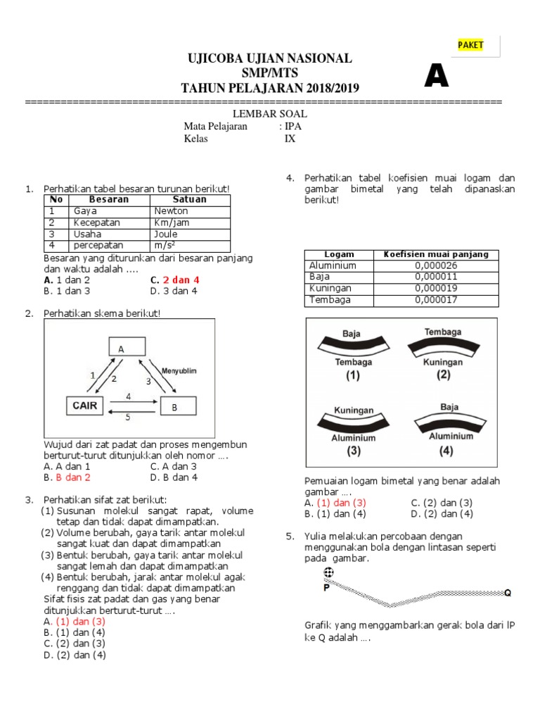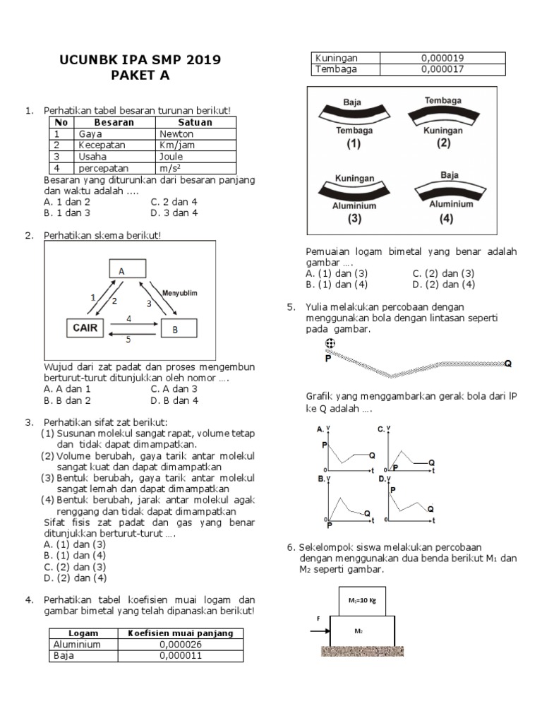 UCUN IPA SMP 2019 P.B.docx - UCUNBK IPA SMP 2019 PAKET B 4 Perhatikan tabel koefisien muai logam dan gambar bimetal yang telah dipanaskan berikut Logam | Course Hero