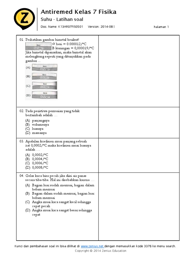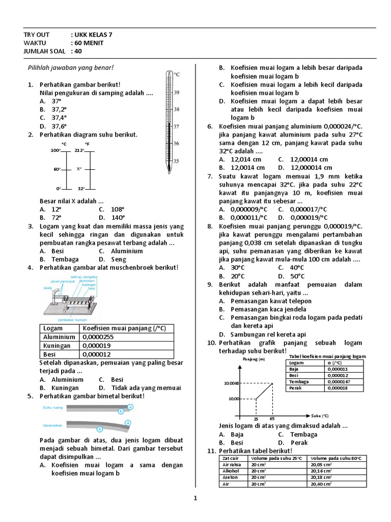 tudy Center | Try Out Online - Fisika VII SMP - Pemuaian Fisika S