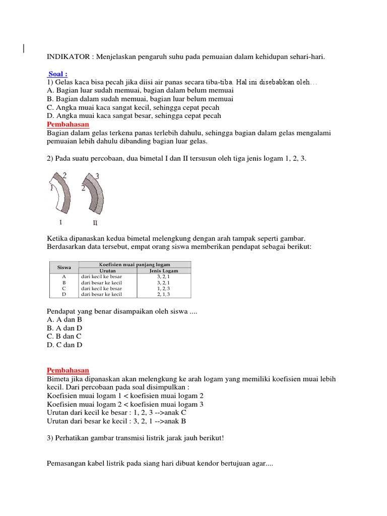 Kumpulan soal-soal suhu, pemuaian dan kalor UN IPA SMP Kelas 9 Nurul …