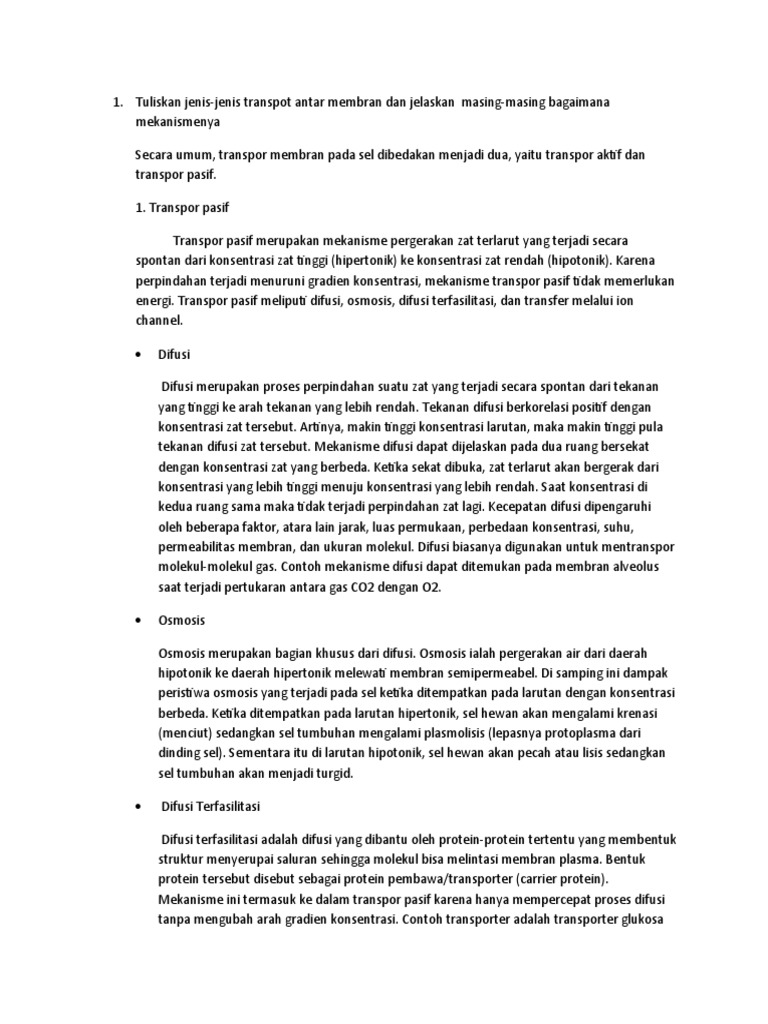 Bacaan siswa mekanisme transpor pada membran - [DOCX Document]
