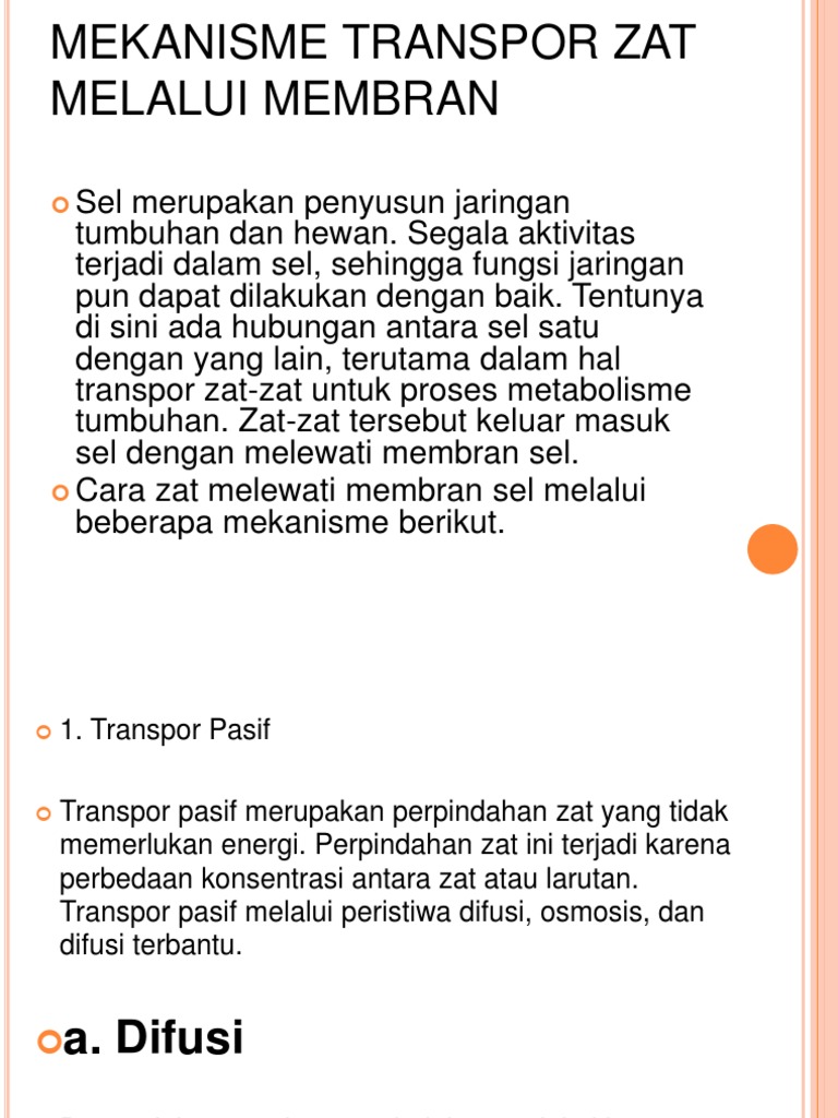MEKANISME TRANSPOR ZAT MELALUI MEMBRAN - ppt download