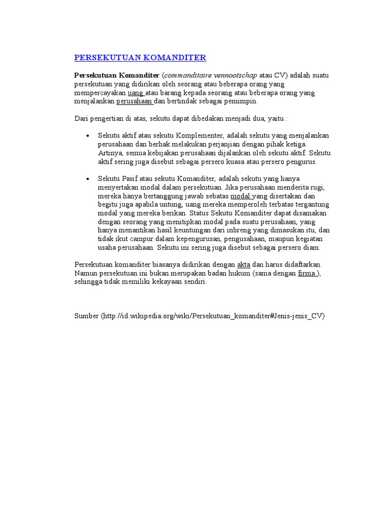 DOC) " Hukum Dagang Persekutuan Komanditer (CV) " | Rutnia Wilujeng - Academia.edu