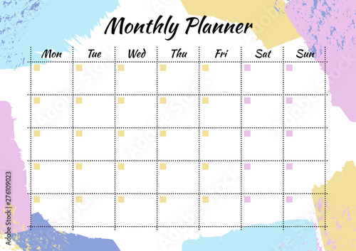 Creative monthly planner with pastel brushstroke on background. Stylish organizer and schedule. Planner template for print, office, school. Vector illustration. - Buy this stock vector and explore similar vectors at Adobe Stock |