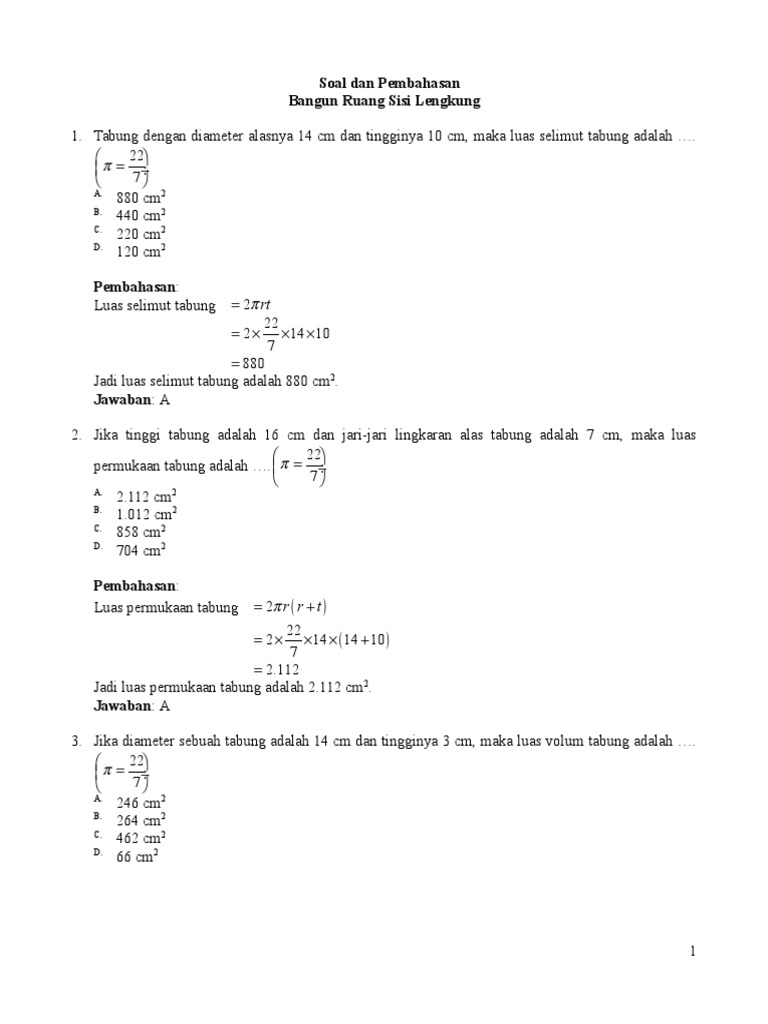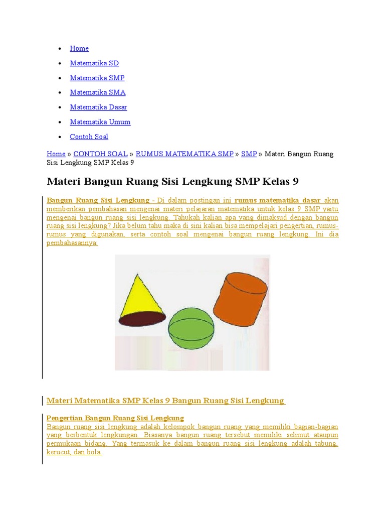 9 SMP Soal Pembahasan Bangun Ruang Sisi Lengkung