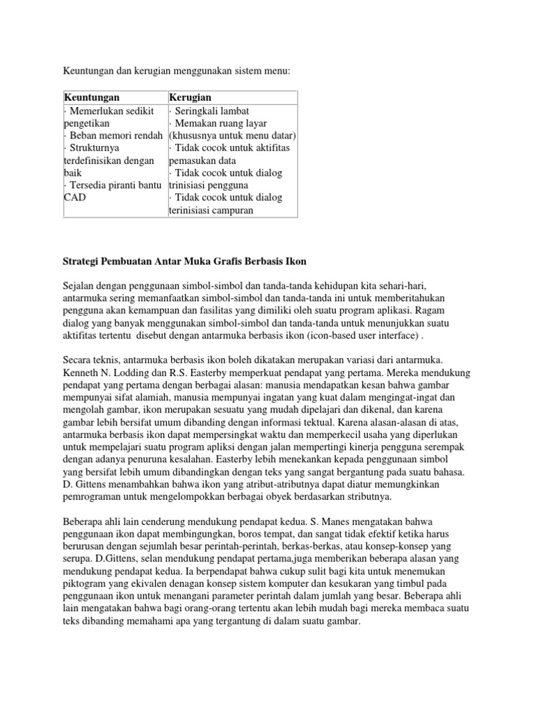 Keuntungan Dan Kerugian Menggunakan Sistem Menu