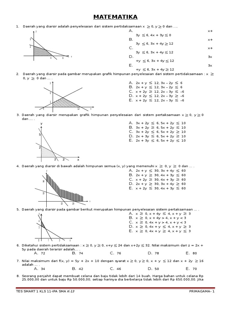 Pertidaksamaan Linear Dua Variabel - Sistem,Daerah Penyelesaian,Soal