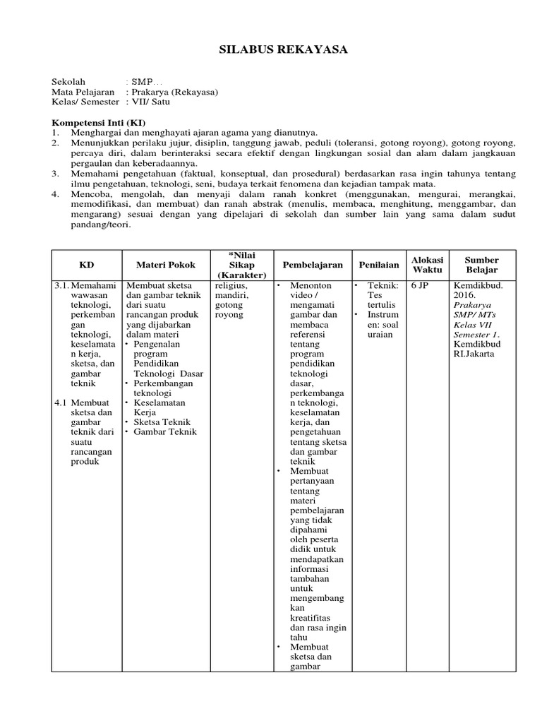 Silabus Rekayasa: Kompetensi Inti (KI)