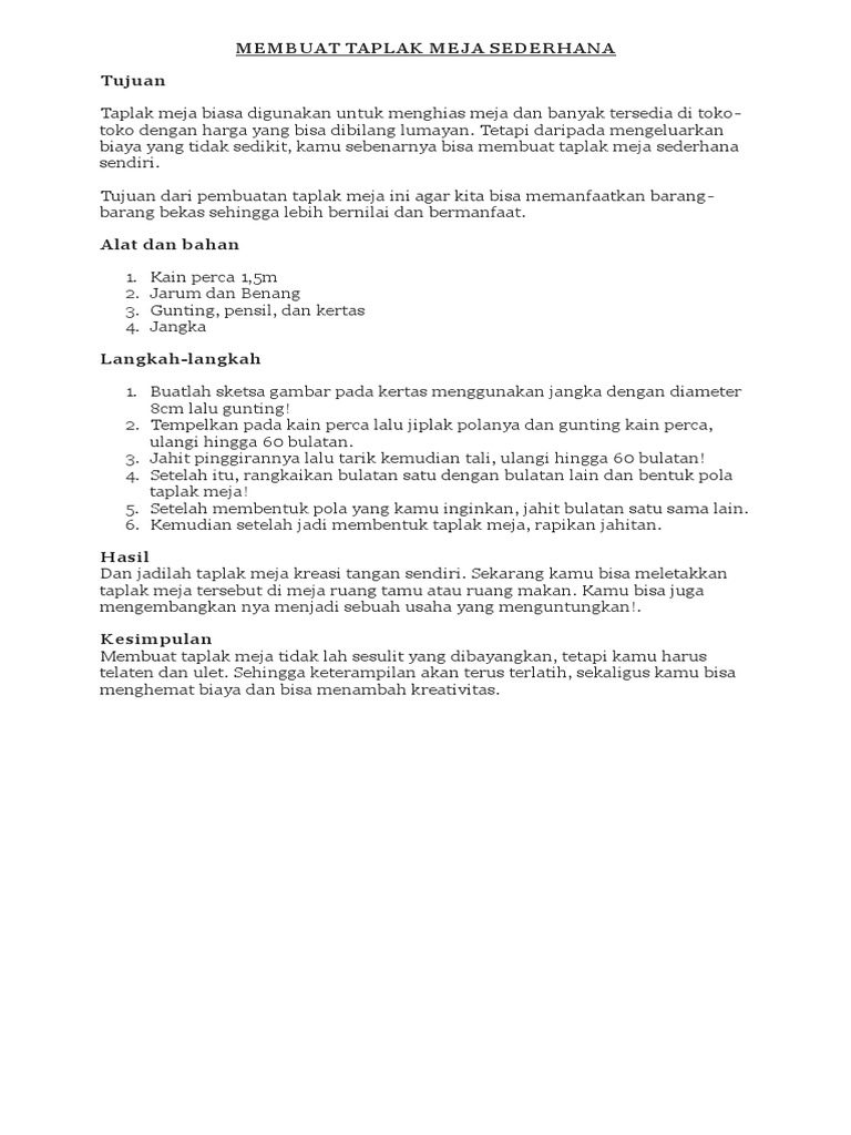 Contoh sketsa membuat taplak meja - Brainly.co.id