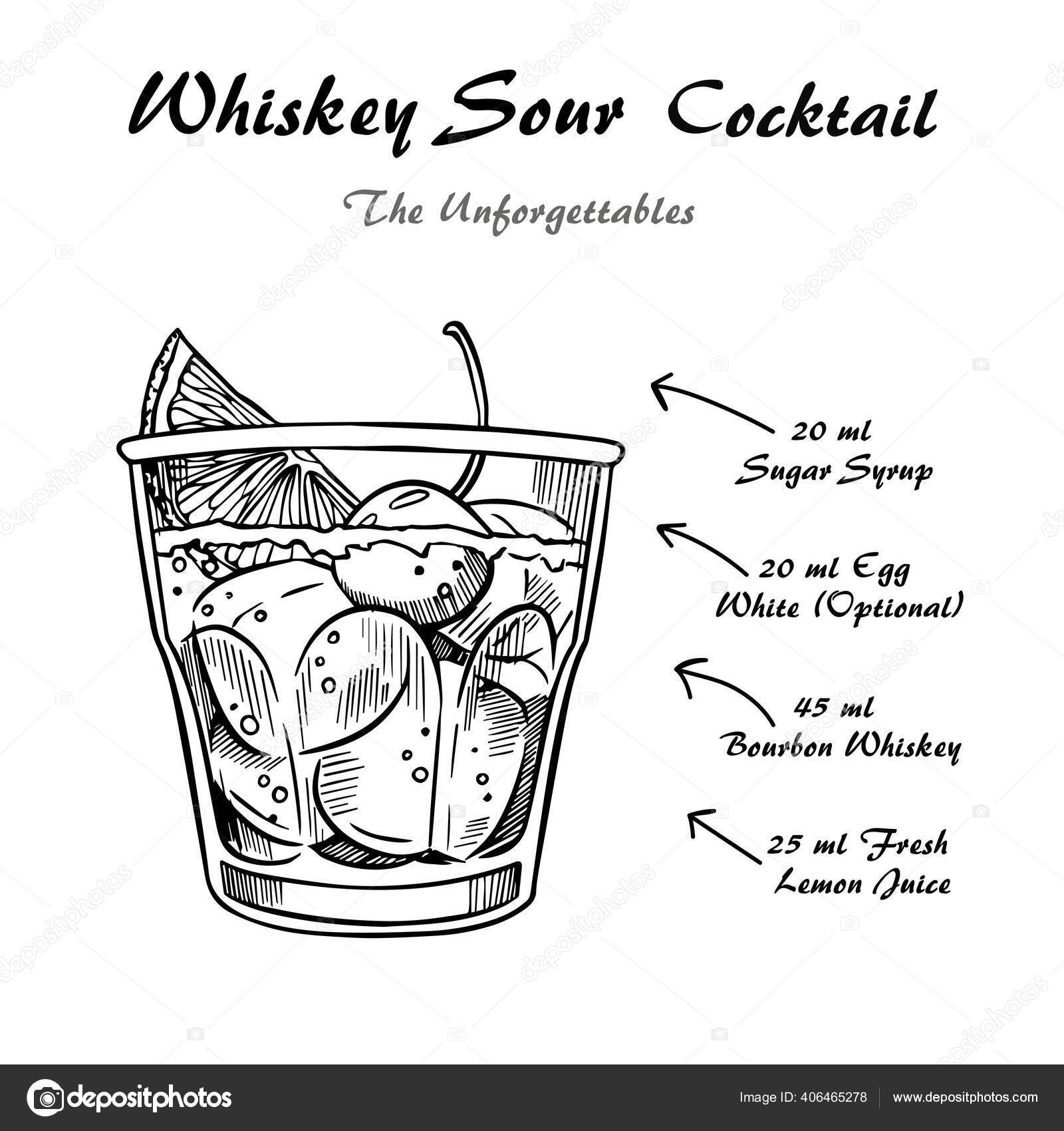 Sketsa ilustrasi resep koktail asam wiski — Stok Vektor © Andreeva_Marina #406465278
