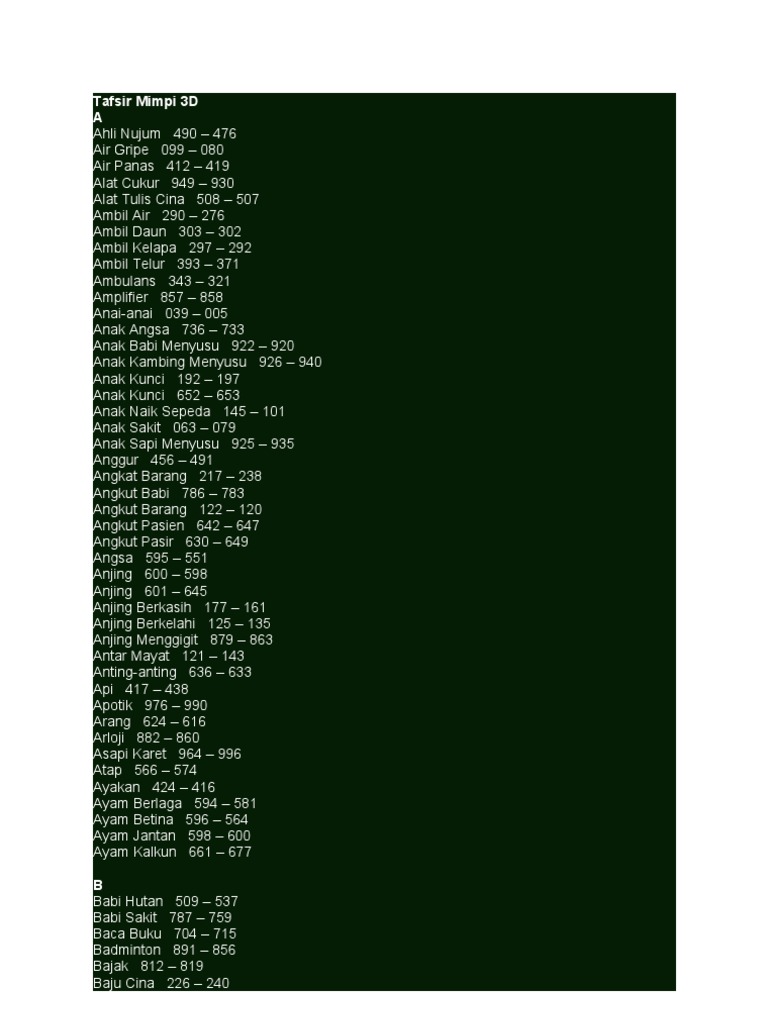 Buku Tafsir Mimpi 4D Togel Menurut Abjad Terlengkap